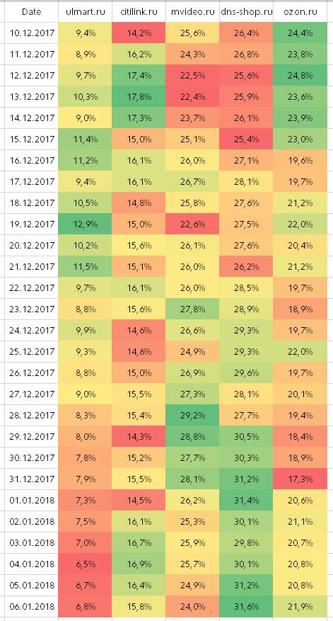 На графике видно, что на начало января почти по всем критериям лидирует DNS.