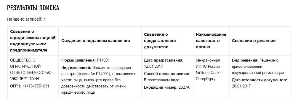 Как следует из информации, размещенной на портале Федеральной Налоговой Службы, 12 января представители «Эксперт Таун» направили в ИФНС заявление по форме Р14001 со сведениями о новом генеральном директоре.