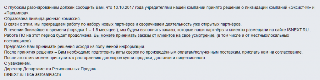 На днях IsNext разослал официальное письмо своим поставщикам. В нём говорится, что компания прекращает работу по набору новых партнёров и сворачивает деятельность уже открытых партнёров.