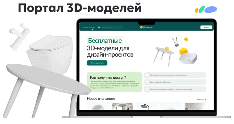 Удобный интерфейс — это, конечно, здорово, но что насчет непосредственно работы? Нам хотелось быть полезными для партнеров в профессиональном плане, и решение не заставило себя долго ждать. За время сотрудничества с различными производителями, а также благодаря усилиям нашей собственной команды дизайнеров в распоряжении "Сантехники-Онлайн" оказались сотни высококачественных 3D-моделей сантехнических изделий, мебели и других товаров для дома и ремонта.