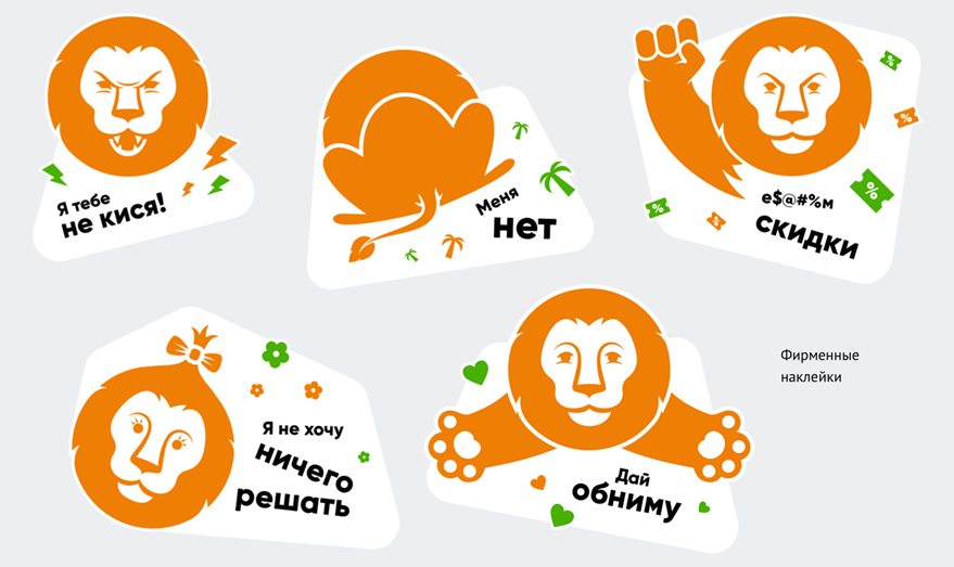 Потом мы разработали несколько стикеров. И теперь они отлично работают. Львы на них выражают разные эмоции, и сотрудники компании охотно наклеивают их на ноутбуки. Это позитивно и лояльно. Нам очень нравится.