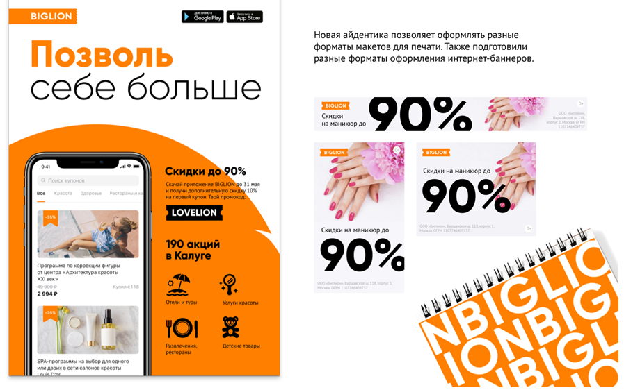 Раньше логотип Биглион был в форме стрелки, направленной вниз, а сейчас он стал больше похож на скидочный купон.