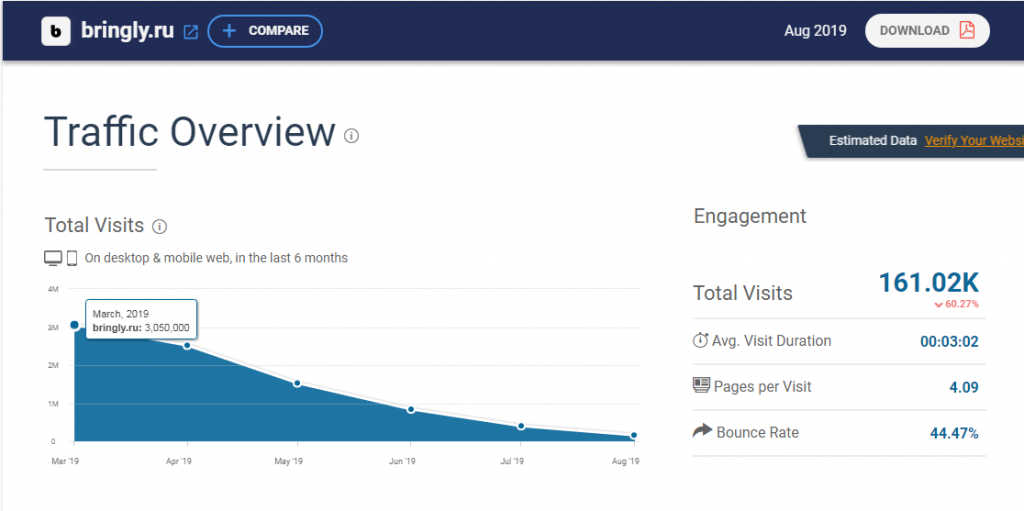 Как следует из данных similarweb, за последние полгода трафик на площадке упал с 3 000 000 человек (в марте) до 161 000 (в августе).