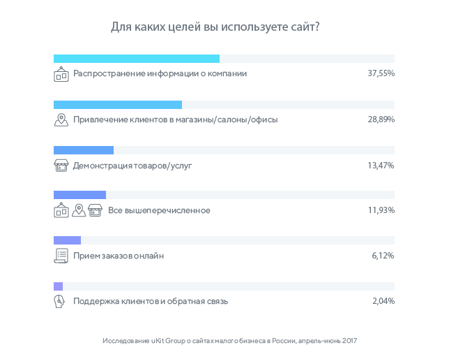 Самое интересное, что 75,3% респондентов довольны своими сайтами, а у 40% опрошенных отсутствует четкое понимание того, какие задачи выполняет их сайт.