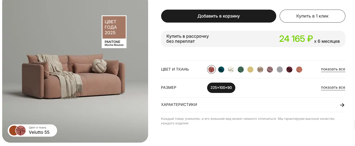 Пример: так один из клиентов, магазин мебели премиального качества Kalibroom, после анализа спроса товаров к концу 2024 года, принял решение создать доступную ценовую линейку товаров, а также акцентировали внимание покупателей дорогих товаров на возможности рассрочки и сумме платежа.