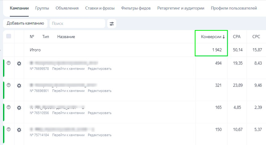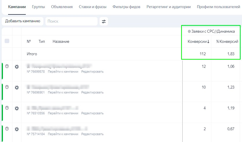 Здесь мы видим 112 обращений — это реальные показатели, которым можно верить, так как выставлены цели «Заявки с CPC». Цель показывает, сколько пользователей оставили заявку на сайте, а не просто перешли по рекламе, посмотрели сайт и ушли.