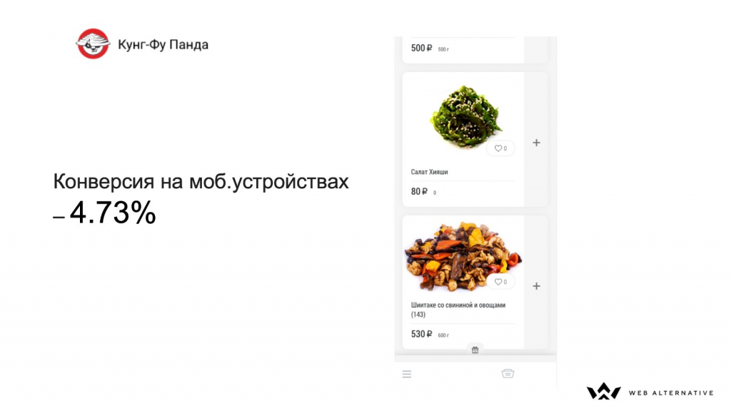 Мы поменяли карточки, топовые товары подняли наверх, и конверсия увеличилась с 4,73% до 22%.