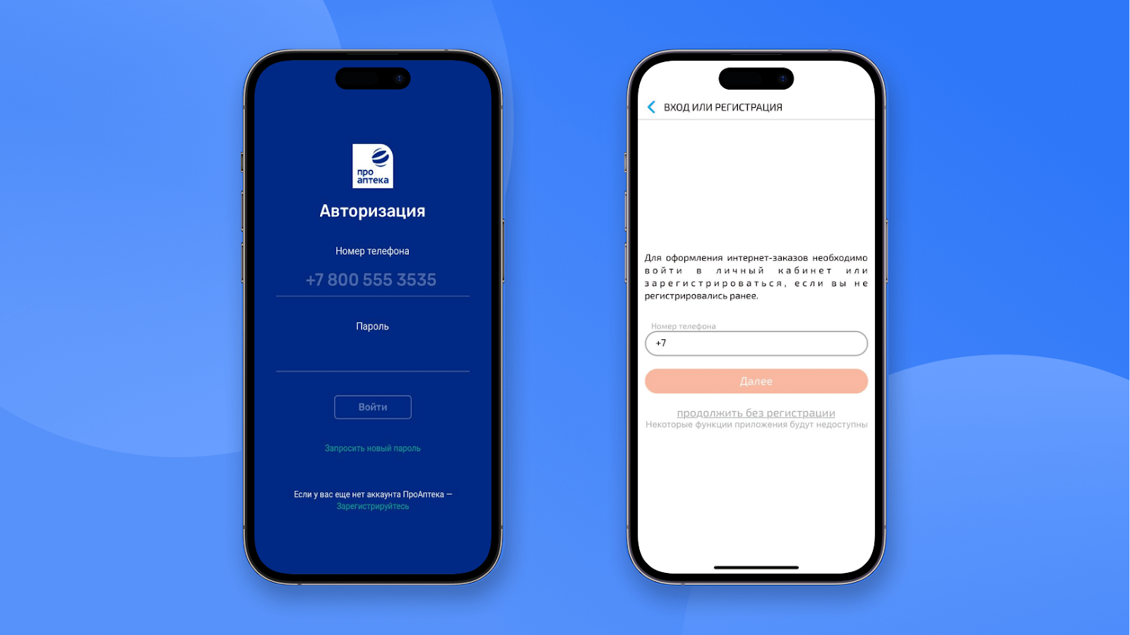 Apteka.ru запрашивает для регистрации только номер телефона