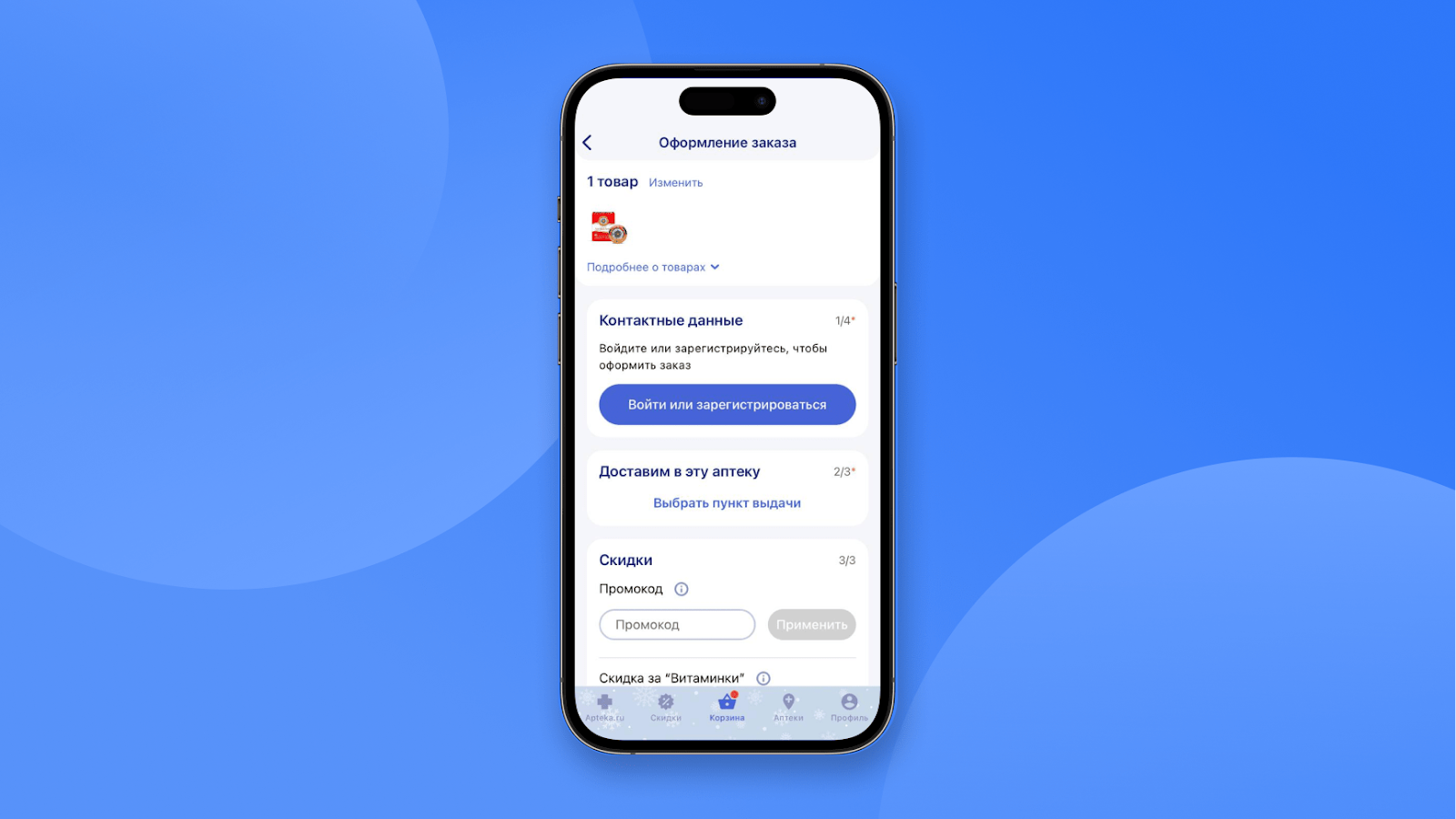Apteka.ru просит зарегистрироваться на этапе оформления заказа