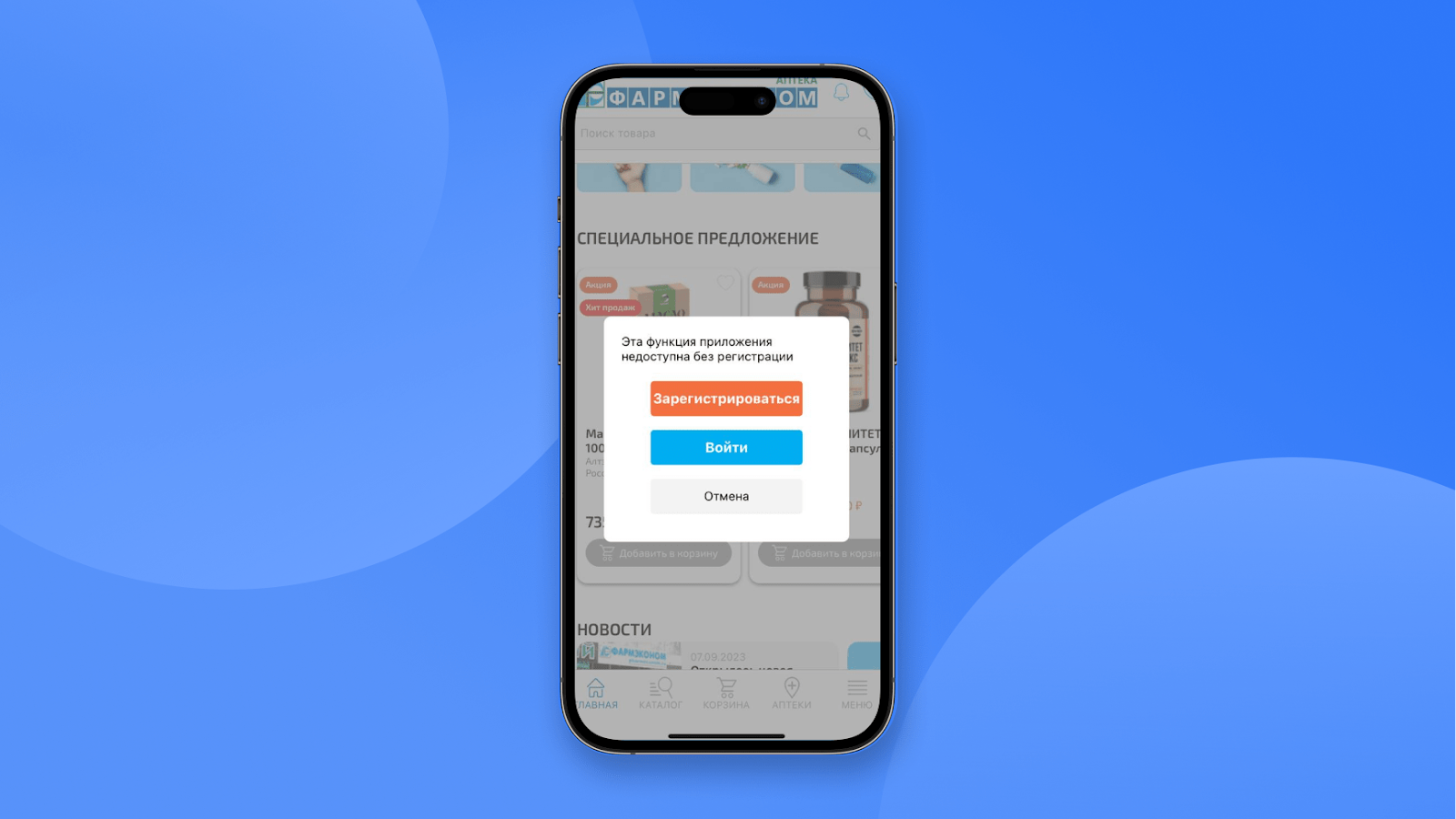 В приложении Фармэконом нельзя добавить товар в корзину