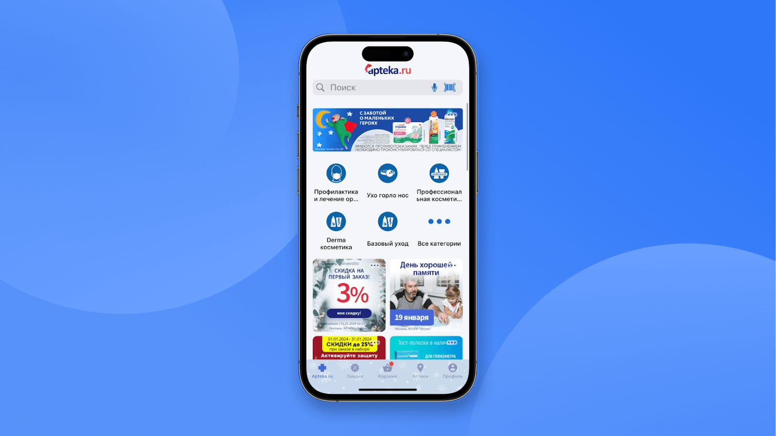 Apteka.ru показывает категории на домашней странице