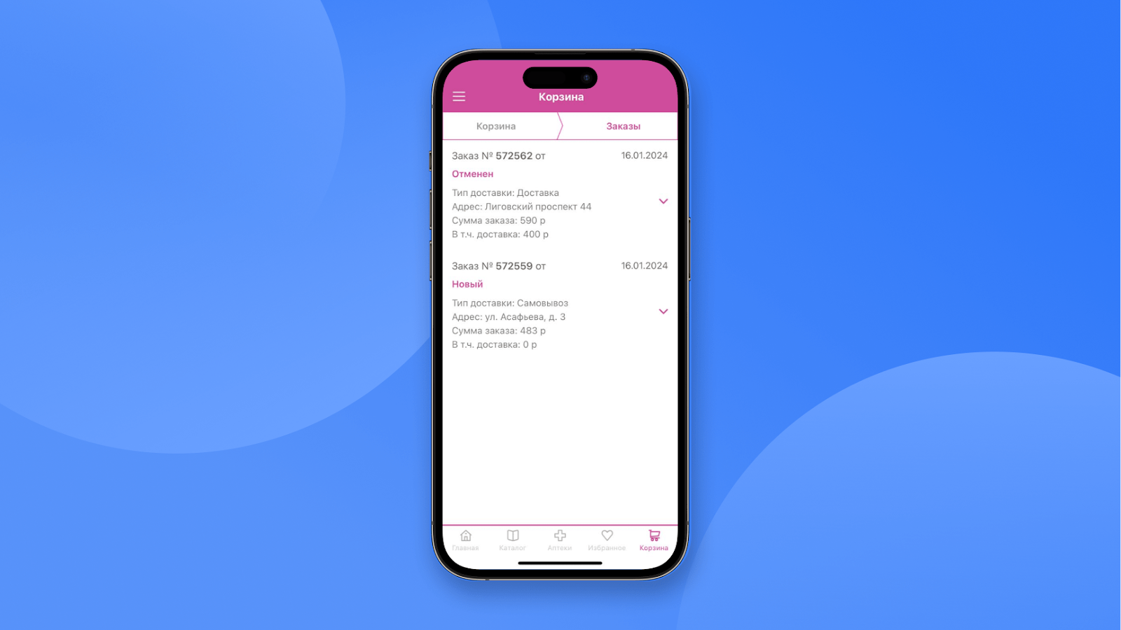 Если у аптеки нет доставки вообще — об этом нужно рассказать на главной странице приложения.