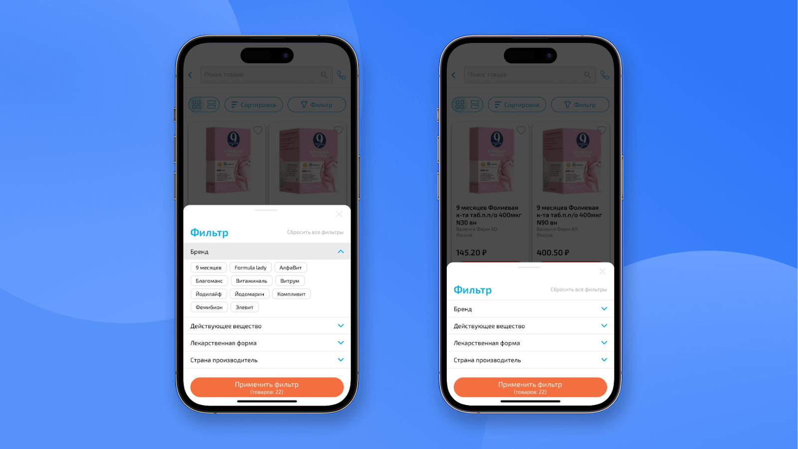 Какие фильтры должно включать приложение аптеки: