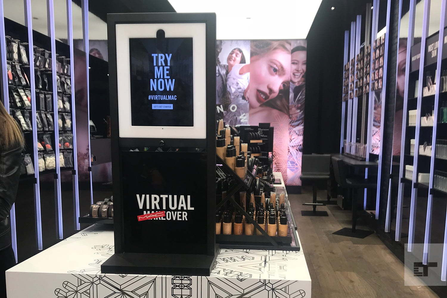 MAC Experience Center оборудован разнообразными сенсорными дисплеями. Виртуальные примерочные позволяют «примерить» 18 оттенков помад всего за 30 секунд. Конструктор теней для век собирает уникальную палетку за пару секунд. На дисплей для тональных основ можно поместить любой продукт: система распознает его и выведет на экран дополнительную информацию, видео-тюториалы и отзывы из социальных сетей.
