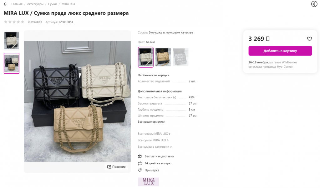 На Wildberries близкие по модели сумки можно найти за сумму от 2500 рублей. На фото - несколько вариантов чуть подороже.