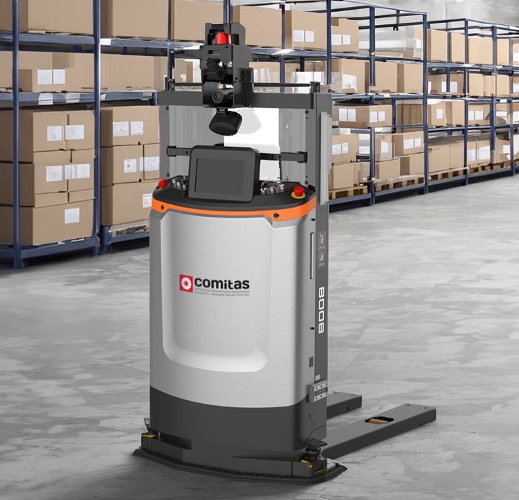 Это мобильные роботы с вилочным захватом, обеспечивающие перемещение паллет внутри склада. Робот позиционирует себя относительно паллеты, которую нужно переместить (например, из зоны приемку в зону хранения), захватывает её выдвижными вилами и перемещает в указанное Системой управления роботами (RMS) место.